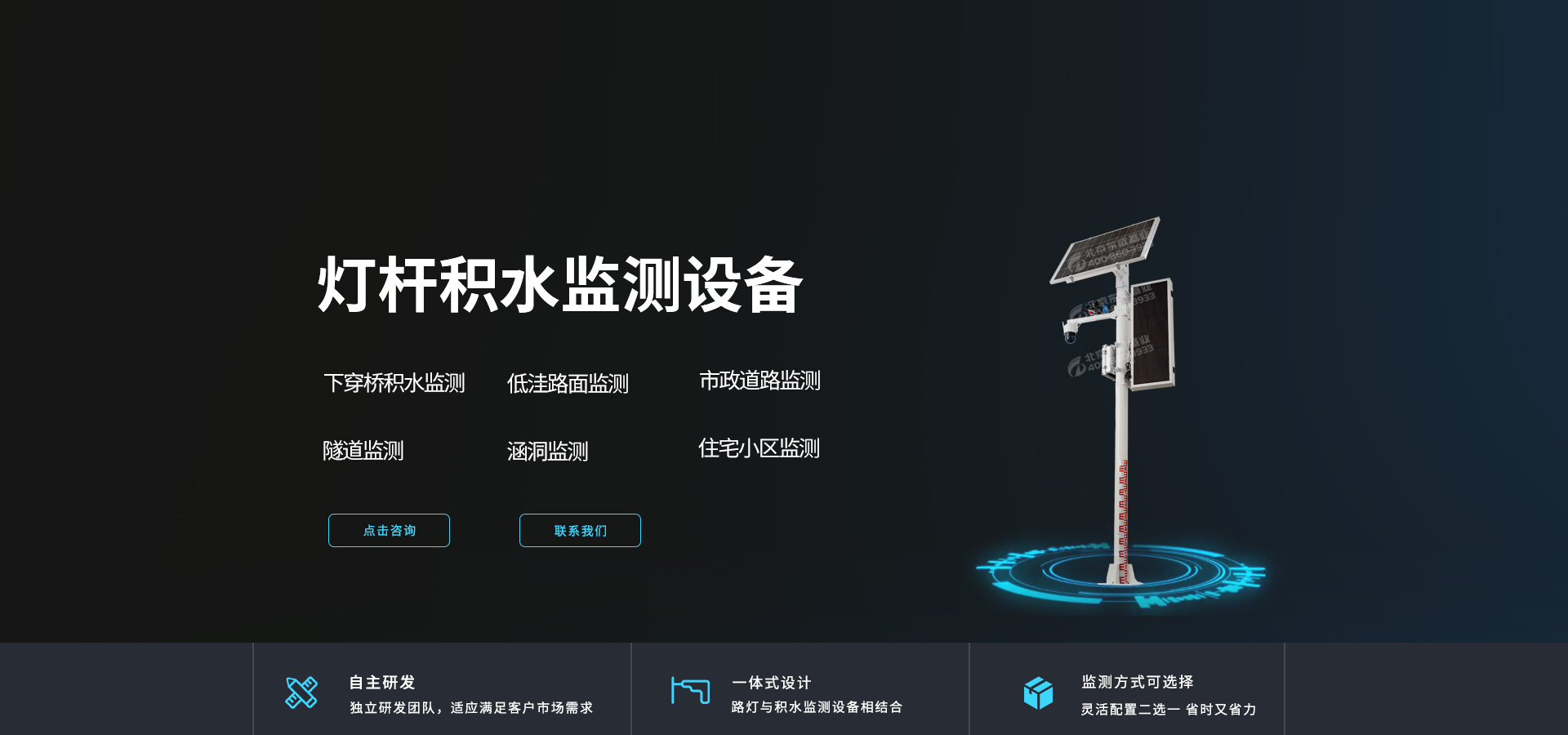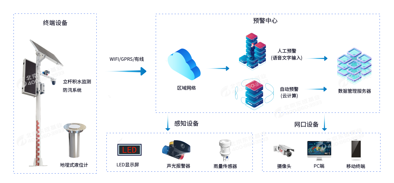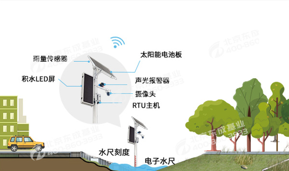 無需安裝地埋式液位計,通過立式燈桿上的水尺便可直觀觀測積水?dāng)?shù)據(jù),可因地制宜選擇4G(全網(wǎng)通)、網(wǎng)口等上傳方式。